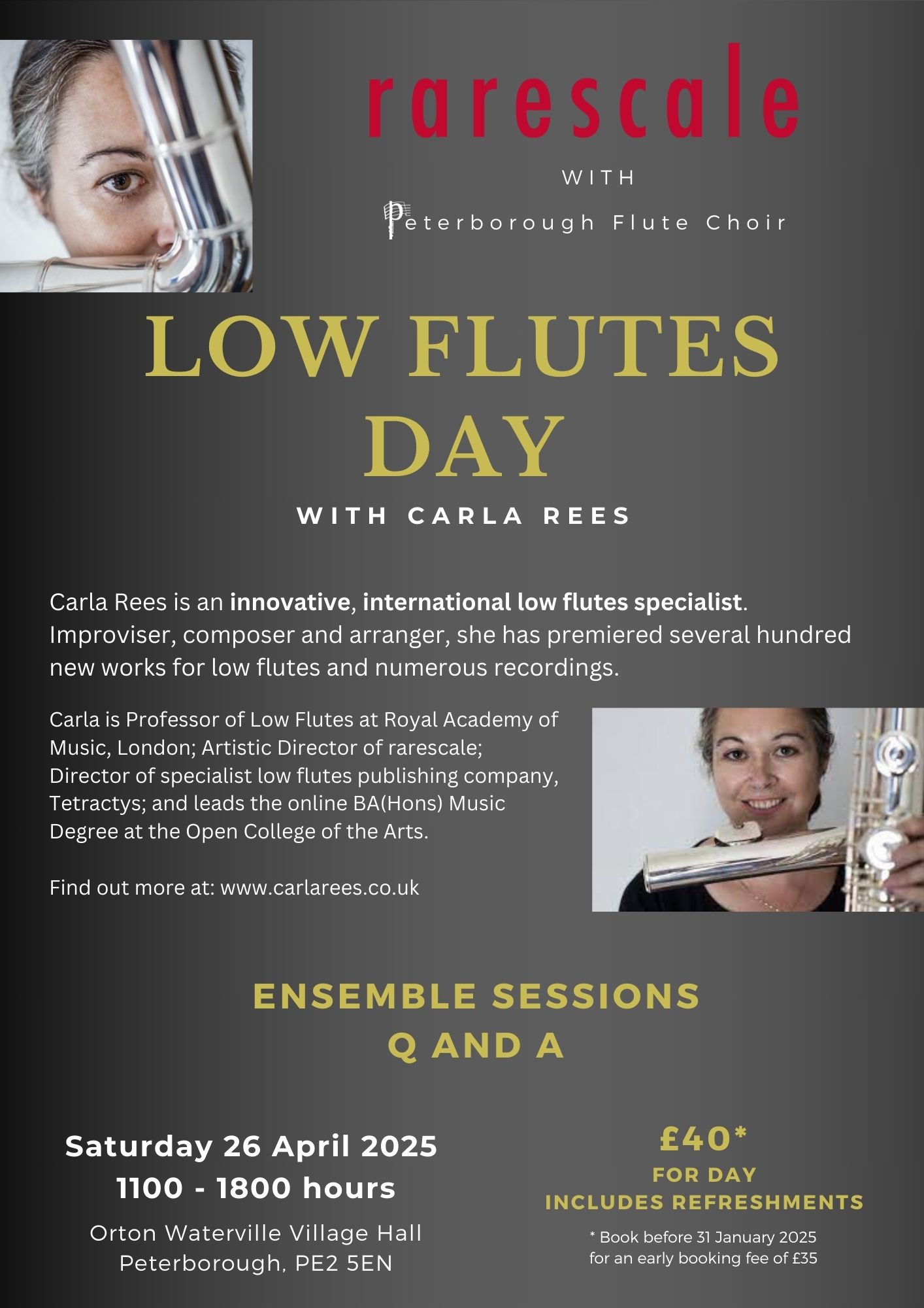 Join us for another fascinating day of low flutes playing led by Carla Rees, the highly esteemed, innovative and international low flutes specialist.Improviser, composer and arranger, she has premiered several hundred new works for low flutes and numerous recordings.