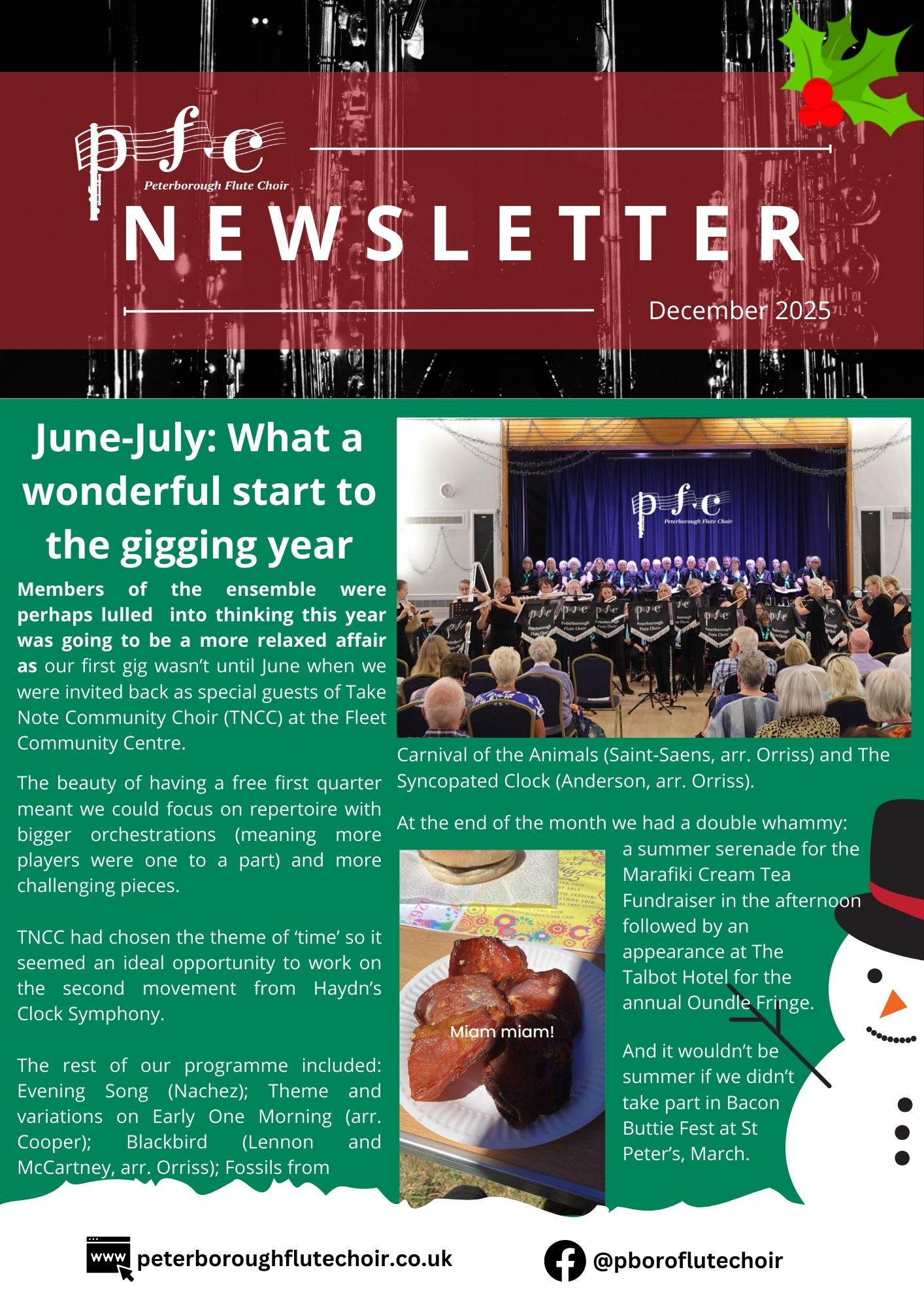 Peterborough Flute Choir creates a newsletter periodically to keep our friends, supporters and followers up-to-date with the activities and events of the Ensemble. It is delivered via our friends email mailing list.